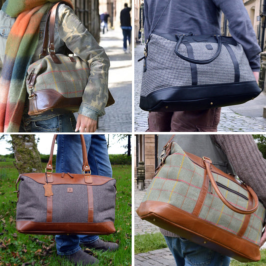 Travel Holdall Bag Weekender Overnighter Leather Tweed