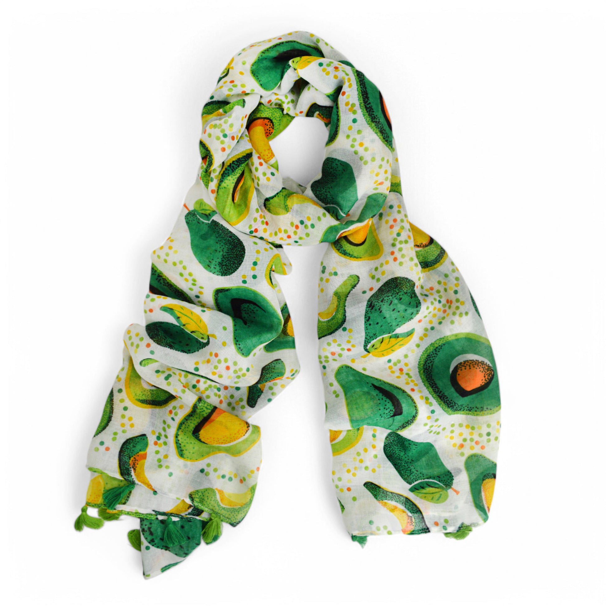 Fun and bright avocado printed scarf.
