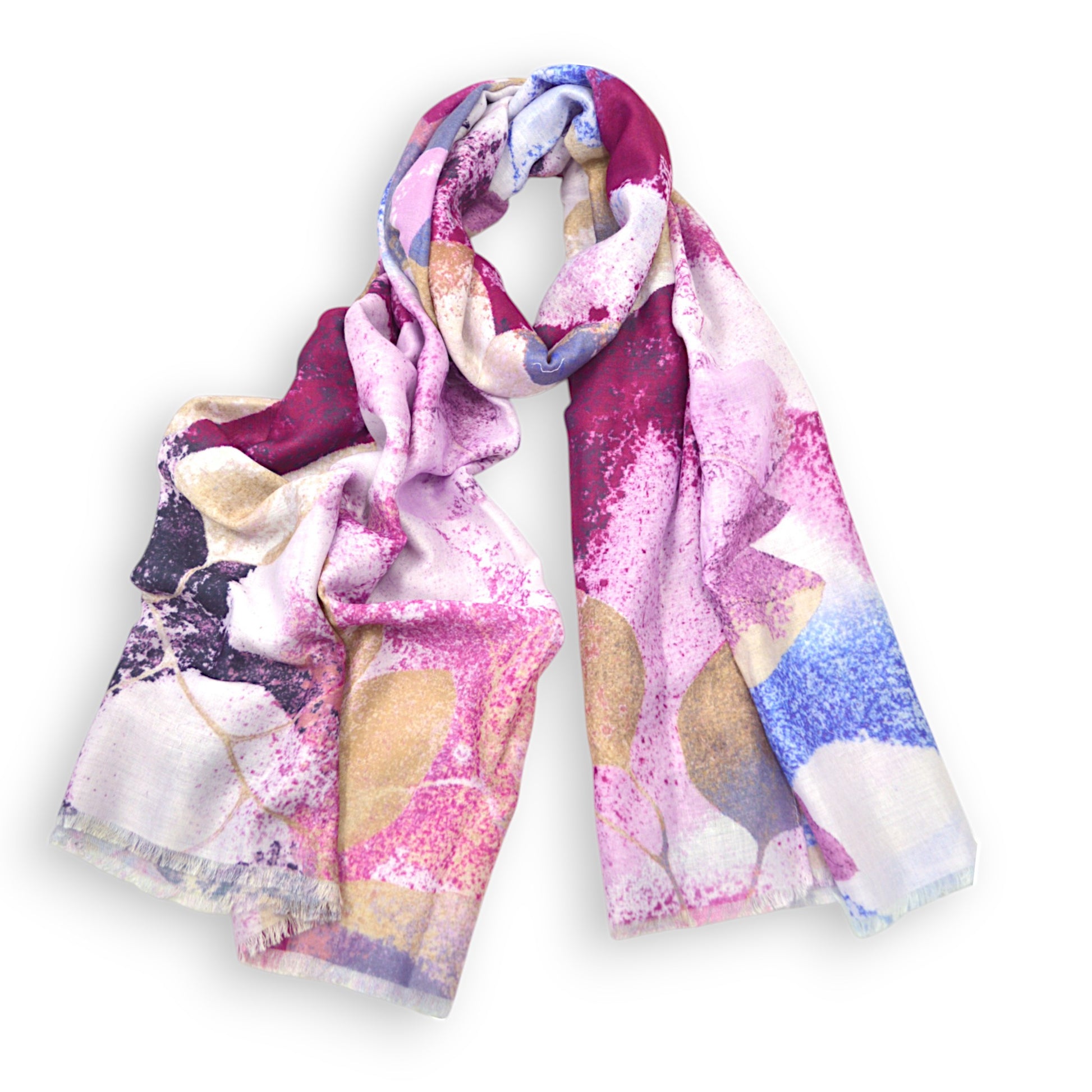 Add a burst of colour to your wardrobe with this fusion of abstract art on a lightweight scarf
